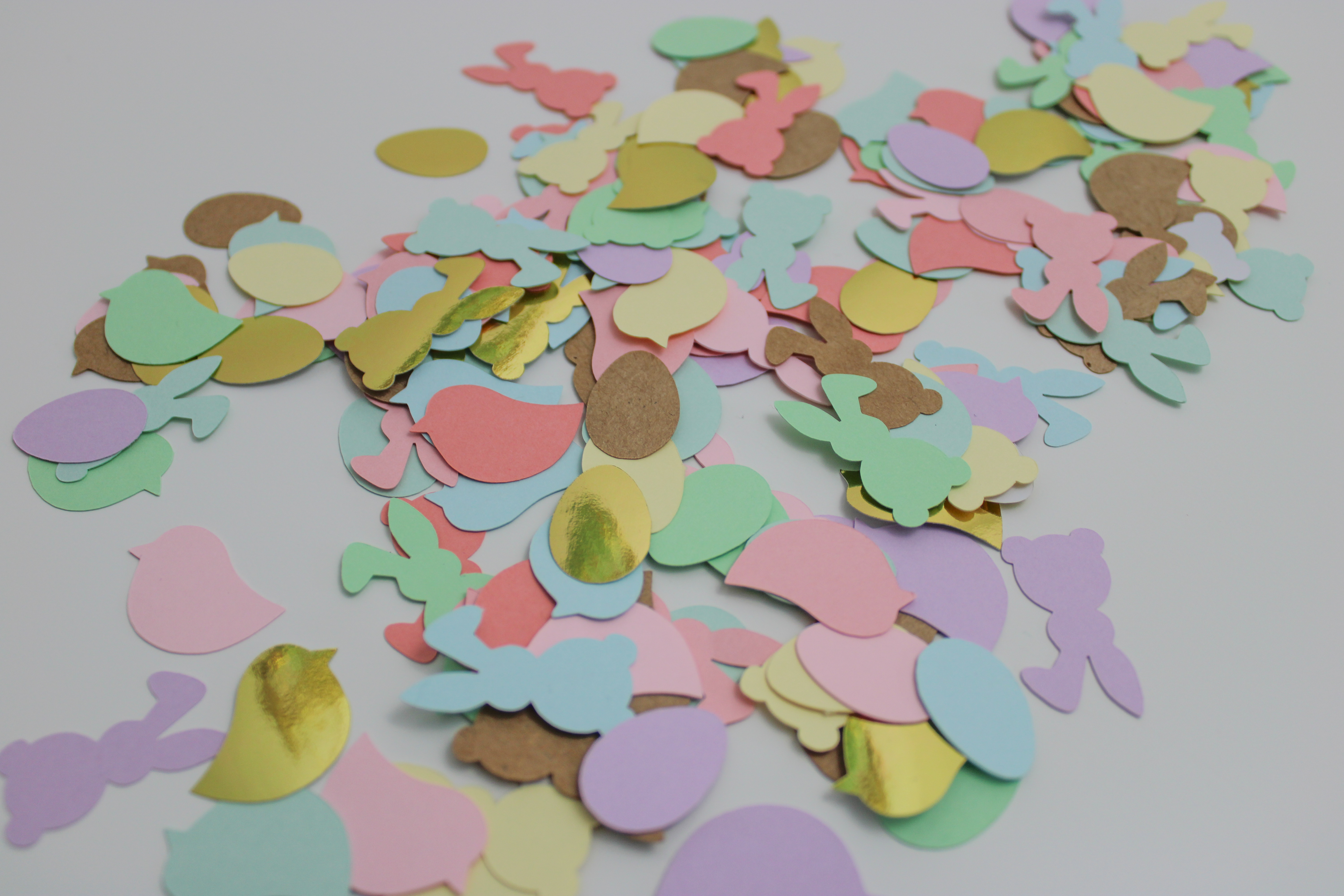 Ana’Phorie Créations a imaginé des adorables kits de décoration en papier, faits main et nous avons imaginé ensemble une mise en scène festive. Confettis, cake-toppers, guirlandes et suspension, c’est une farandole d’œufs, de poules et de lapins qui débarque !