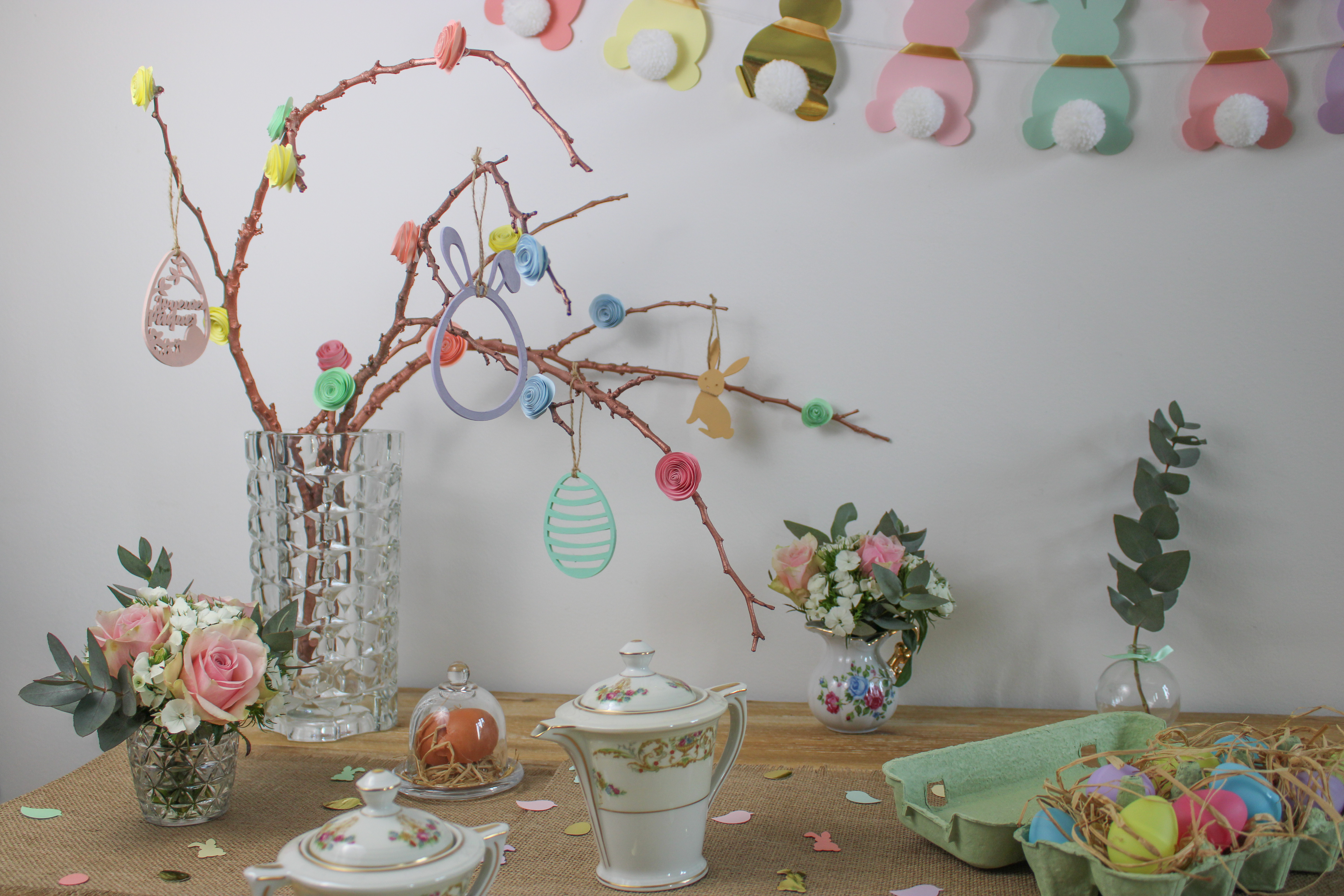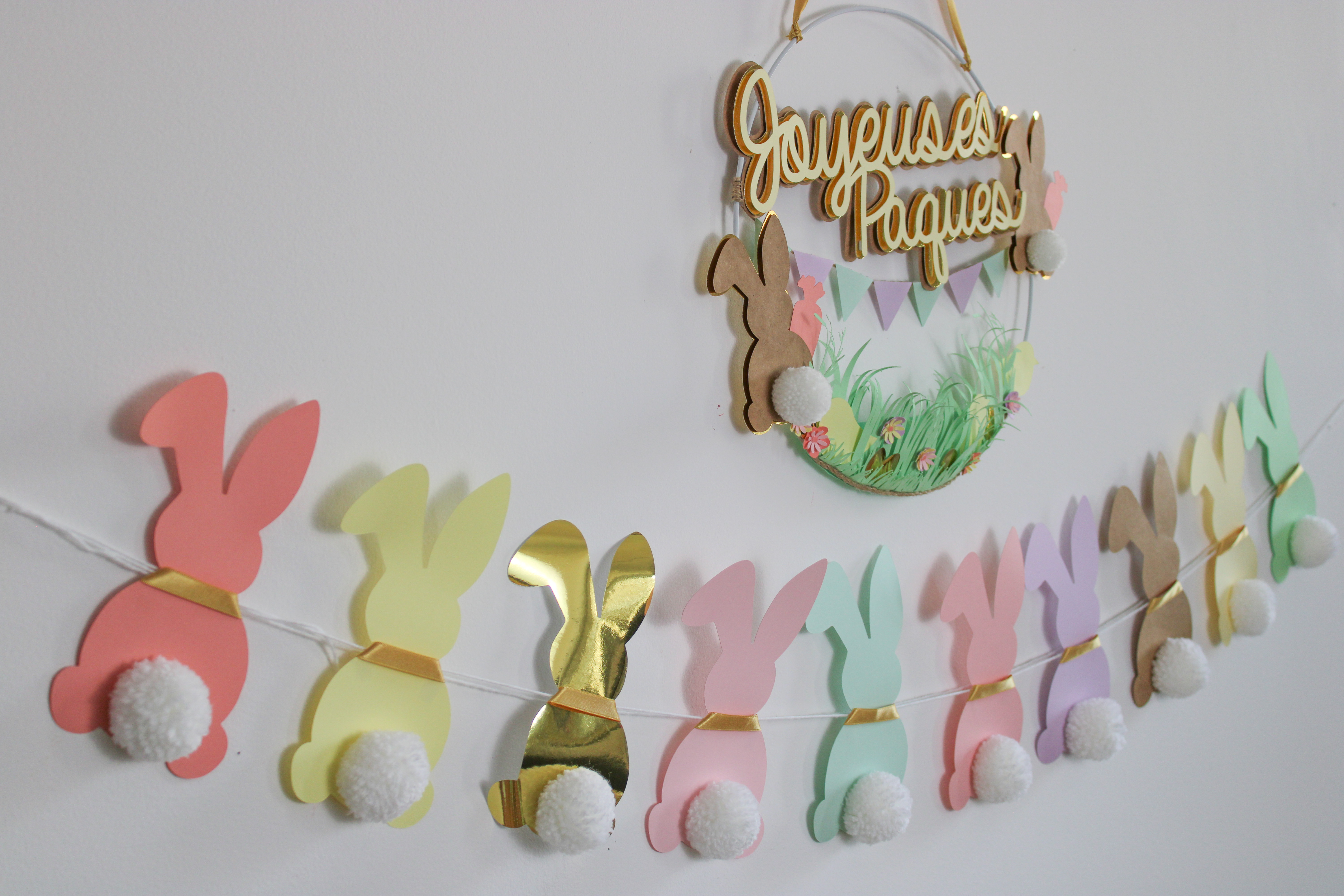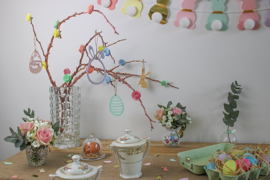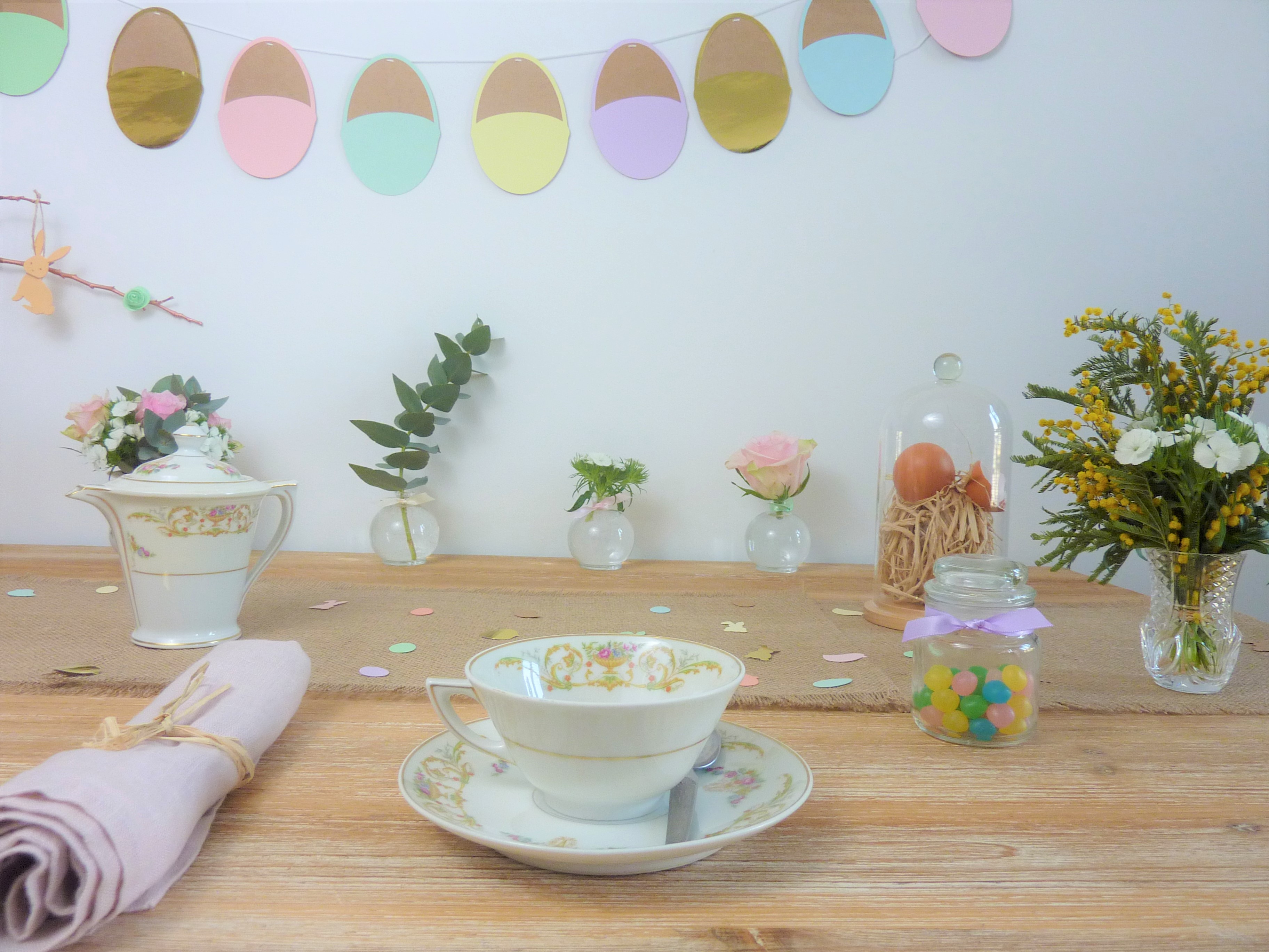 Et voilà, le tour est joué ! Quelques confettis sur la table, suspension et guirlandes au mur, et vous êtes prêts à régaler petits et grands pour Pâques. Évidemment, dans cette période troublée, on ne saurait que trop vous inciter à la prudence en famille. Prenez bien soin les uns des autres. Restons vigilants et solidaires, les beaux jours reviendront.
